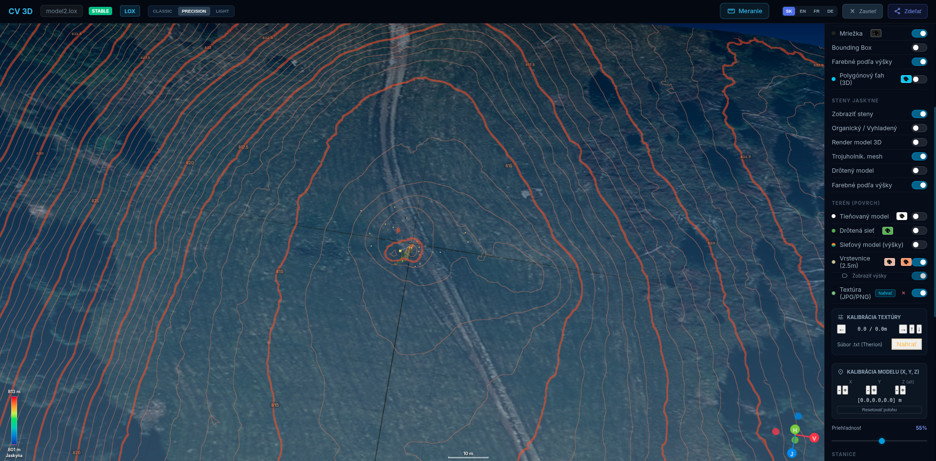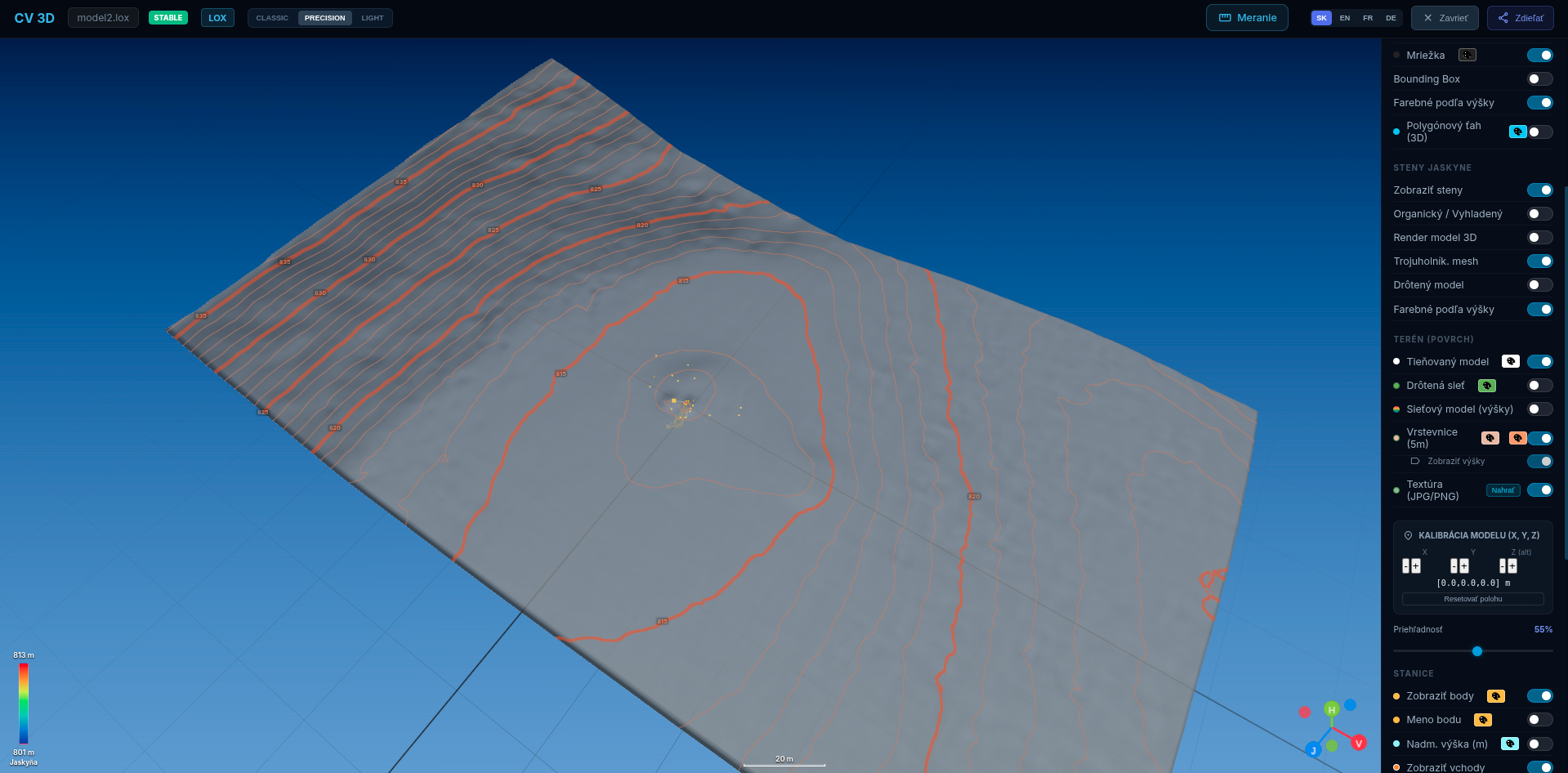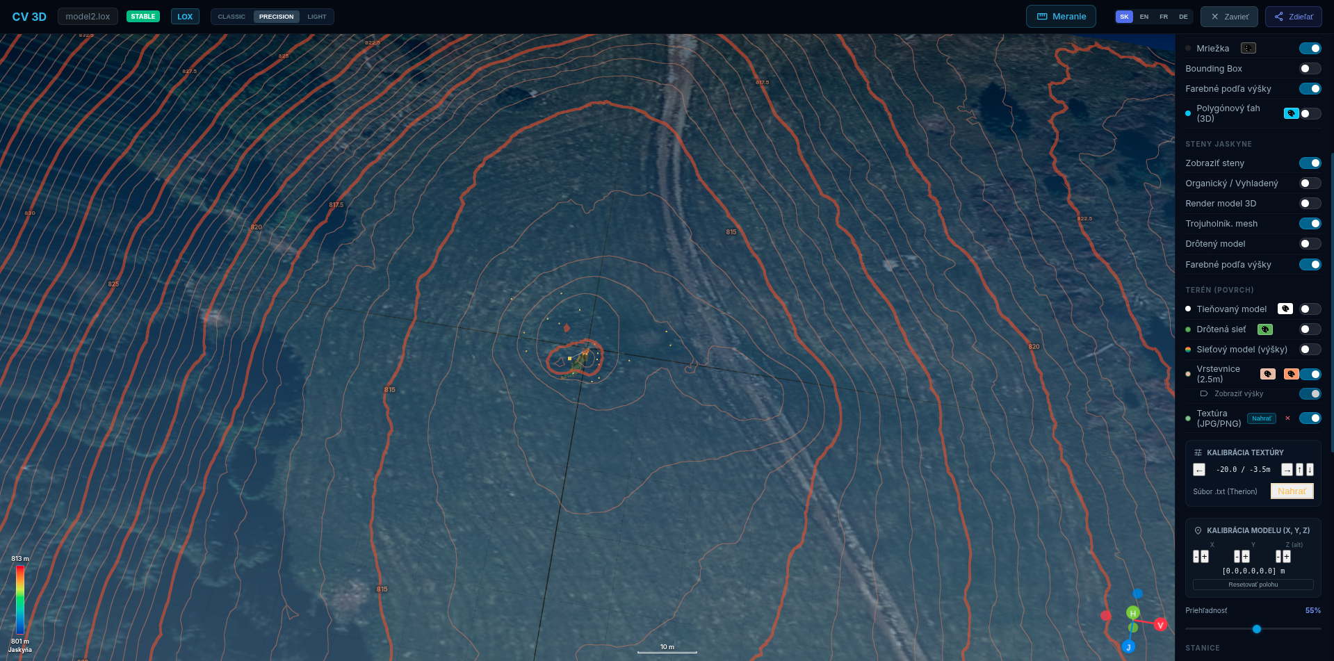 - 3D pravítko: Meranie vzdialeností medzi bodmi je teraz maximálne intuitívne, je mozne merat vzdialenost medzi vetvami jaskyne, dvoma modelmi alebo k lubovolnému bodu povrchu.