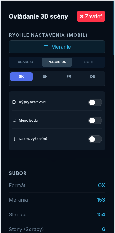 Celý LochViewer je responzívny. Na mobile sa menu skryje pod hamburger, aby ste mali celú plochu na model.